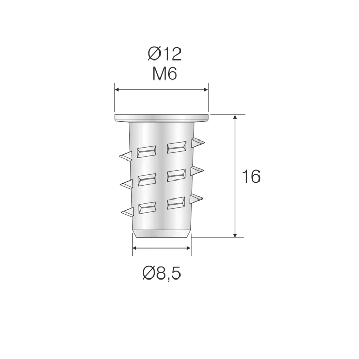 Ø8x16 M6 Metal Tırtıllı Dübel