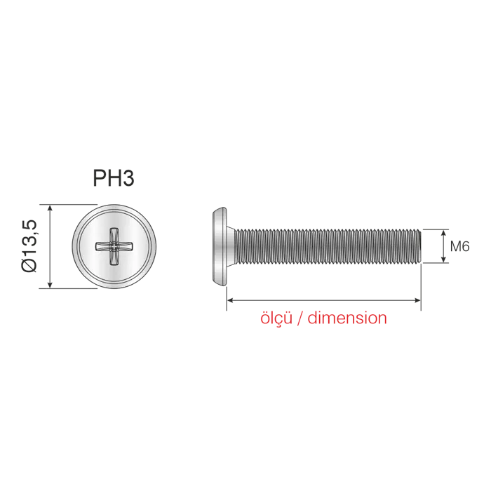 M6 PH3 Cylinder Compression Screw 35mm