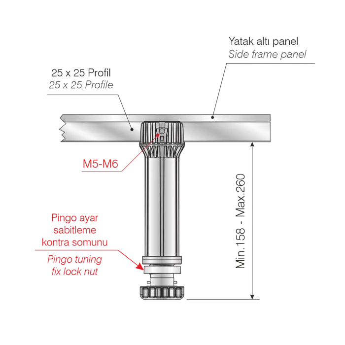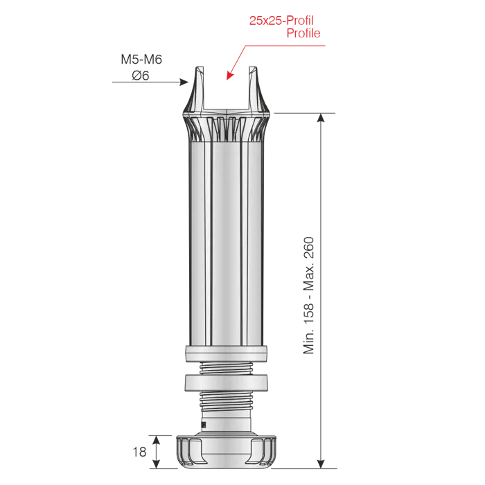 Linefix Support foot for metal profile lock nut 25x25