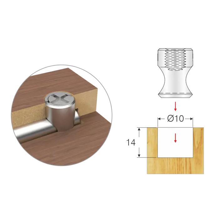 Ø7mm horizontal connector (Steel pin + zamac grub screw)