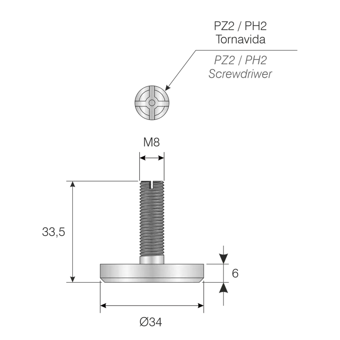 Ø32mm Adjuster foot M8