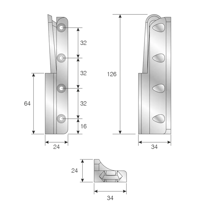 BEDSET Slide corner fixing 126mm