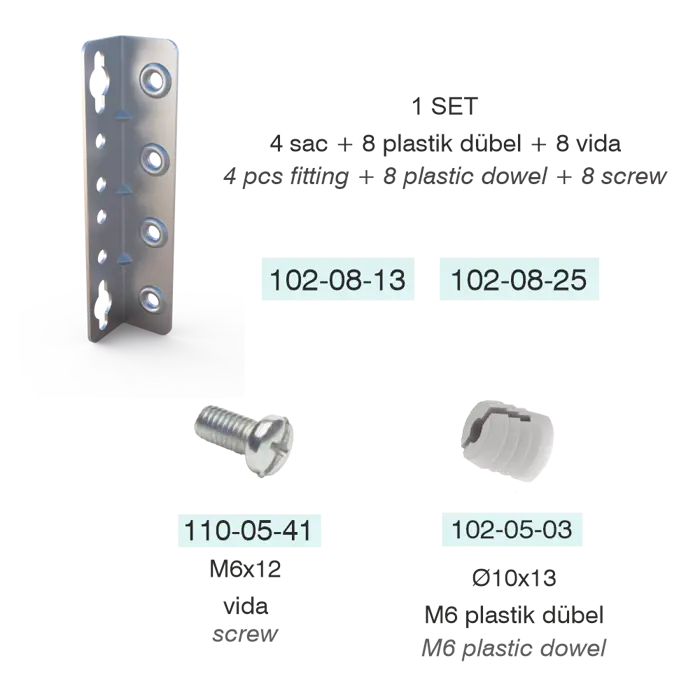 Bed Fitting 1,2mm with key-hole slots, Set